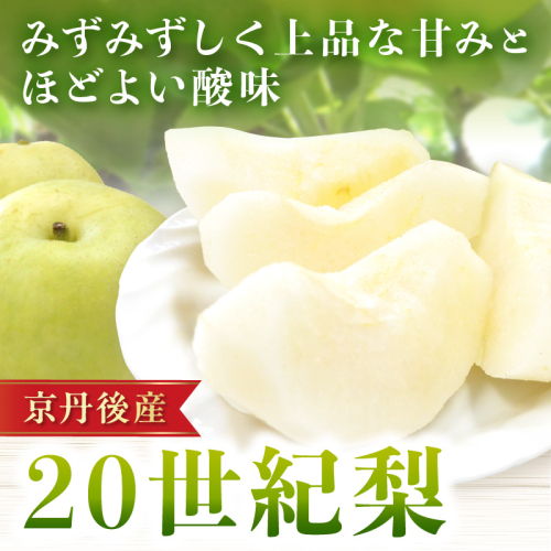 ~丹後地域特有の自然環境と、農家の細やかな栽培技術が、美味しさの秘密~ 京丹後産の廿世紀梨は、海に面した丹後半島の澄んだ空気、清らかな水、ふりそそぐ太陽のもとで大切に育てられています。 丹後のナシ栽培の歴史は古く、明治時代から。爽やかな甘みが持ち味の二十世紀です。コンポートなどのデザートにもどうぞ! ぜひこの機会に、京都・京丹後産の二十世紀梨をご賞味ください。 【特徴】 さっぱりとした甘みと上品な味わいを持つ青梨。果皮が滑らかで形が良いのが特徴です。 事業者:京都農業協同組合 【地場産品類型】1 【類型該当理由】区域内で生産された農産物であるため