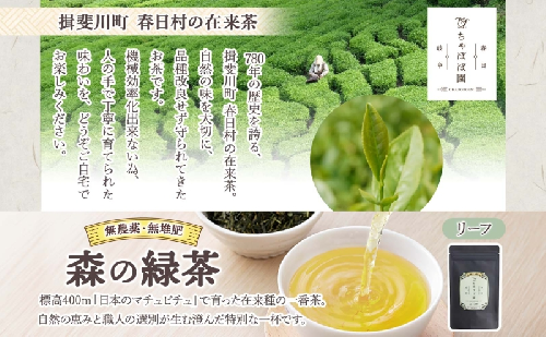 - 森本工房 森の緑茶 リーフ 40g 2袋 お茶 茶 緑茶 日本茶 茶葉 煎茶 国産 日本産 岐阜県産 香り豊か うまみ 香り 急須 ホット アイス すっきり 甘み 苦味 お好み 一番茶 ちゃぼぼ園 日本のマチュピチュ お取り寄せ 送料無料 岐阜県 揖斐川市