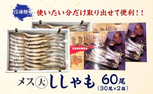 北海道産 ししゃもメス 大60尾(30尾×2箱) 北海道 稀少 魚 シシャモ メス おつまみ 魚貝類 海鮮 干物 本物 人気 希少 塩 味付け 脂のり 旨み 美味しい 大きい グルメ 惣菜 酒の肴 国産 北海道 赤平市
