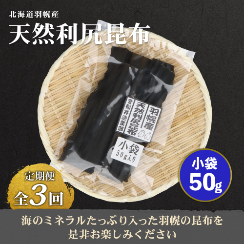 【定期便:全3回】 北海道羽幌町産 天然利尻昆布 小袋 50g | 昆布 天然昆布 こんぶ コンブ オンライン 申請 ふるさと納税 北海道 羽幌 利尻昆布 高級昆布 定期便 出汁 だし 昆布巻き 煮物 佃煮 北海道産昆布 羽幌町