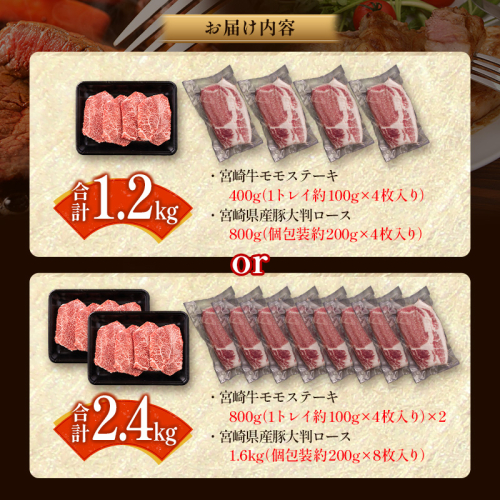 <選べる内容量>宮崎牛×県産豚 ステーキ食べ比べ セット 国産 人気 おすすめ 宮崎県産 ジューシー 冷凍【C458-D155】