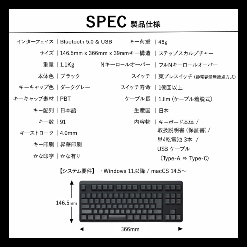 ・東プレスイッチと呼ばれる物理的な接点が無い静電容量無接点方式のキースイッチを搭載し、優れた信頼性と耐久性を実現