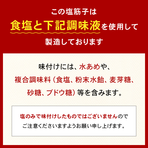 紅鮭卵(アメリカ)、還元水飴、複合調味料(食塩、粉末水飴、麦芽糖、砂糖、ブドウ糖)、食塩/調味料(アミノ酸)、酸化防止剤(ビタミンC)、着色料(赤102、黄4)、発色剤(亜硝酸Na)、(一部にいくらを含む)