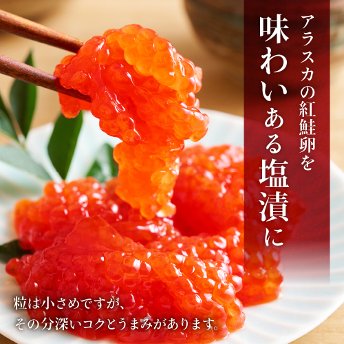 アラスカの紅鮭卵を塩漬しました。サイズが不揃いではありますが、正規品と同じ製造工程で加工しておりますので、もちろん味は一緒です。