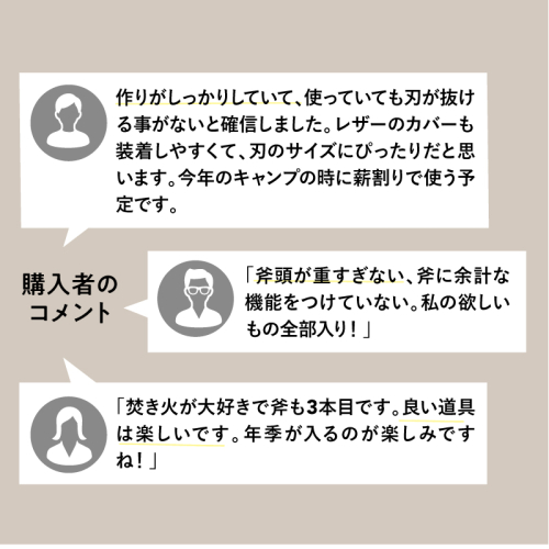 “薪”と“火”に精通した、この道一筋のファイヤーサイドが手塩にかけて開発した国産手斧です。