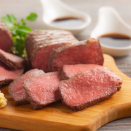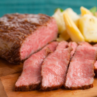 松阪牛の赤身の旨味と脂身の旨味を両方味わうことのできるローストビーフをお届けいたします。
