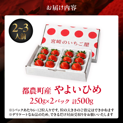 ≪数量限定≫都農町産いちご「やよいひめ」計500g フルーツ 果物 デザート イチゴ 国産_T059-0015