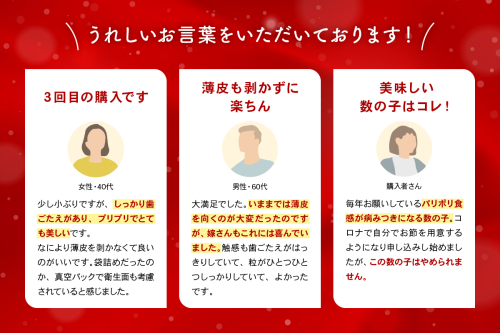 良質な北米太平洋産!大き目サイズの立派な数の子です。簡単便利な「うす皮むき」タイプで食べやすくなっています!