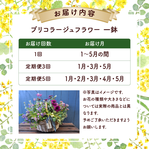 【定期便3回】季節のお花が楽しめる☆お花屋さんの定期便 3回 ブリコラージュフラワー 寄せ植え 15?20株