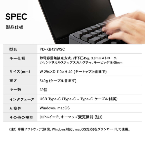 最上位モデルと同じ「Type-S」キー構造を採用したUSB接続(Type-C)専用モデル。