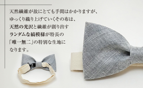遠州織物の技法を活かし、天然素材であるアバカの繊維を使い織り上げた生地を使った蝶ネクタイです。