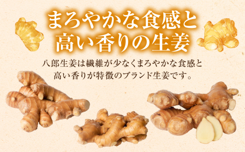 生姜の種類はいくつかありますが「八郎生姜」は通常の生姜の約5倍ほどの大きさながら、繊維が少なくまろやかな食感。 東陽村内主要品種の土佐1号からの突然種で、5年の歳月をかけて種子選を行い、現在少量の出荷を行っています。 是非とも堪能してみてください。 ■産地 熊本県八代市 ■原材料名 生姜(熊本県八代市産) ■保存方法 常温