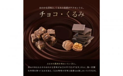カカオのほろ苦さが口の中でほのかに広がり、くるみ特有のコクと香ばしい歯ごたえが加わることで、ひと粒の中に奥行きある味わいを感じられます。