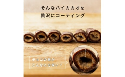カカオパウダーをさらにまとわせることで、ひと粒ごとにリッチなコクが際立ち、クセになる味わいに。思わず手が止まらなくなります。