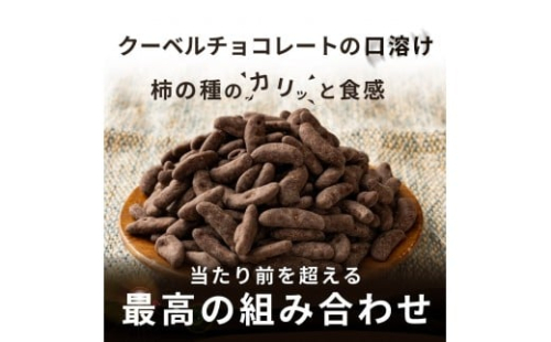 甘さ控えめ、香ばしさ引き立つ、大人の味覚。柿の種とハイカカオチョコの出会い。