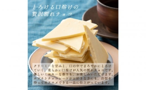 ホワイトチョコレートの魅力、やわらかな甘さ、まろやかな風味、なめらかな口どけを存分に引き出した割れチョコレート。
