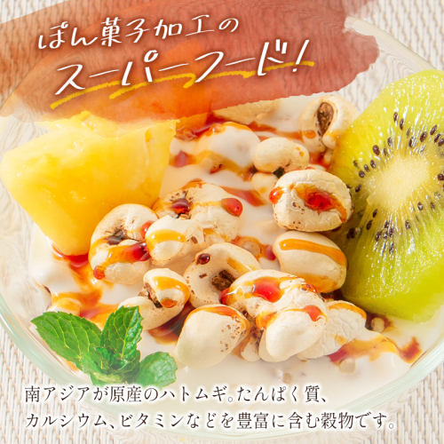 宮崎県新富町のお菓子屋さんより「無糖 ハトムギぽん菓子(100g×2袋)」を返礼品としてご用意いたしました。