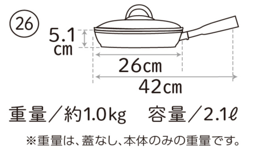 ●サイズ/外径26×高さ5.1×最大長42cm・底厚4.7mm以上