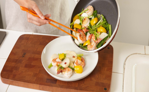 ギョーザ、ハンバーグ、ホットケーキまで「油ナシ!」でヘルシーに均一に焼けるフライパン。野菜や卵をゆでる時もほんの少しの水でOK!素材の旨味や栄養をしっかり残し、色鮮やかに仕上げます。その秘訣は、丁寧な手造り製法から生まれる材質「多孔質アルミ」と、アサヒ独自のコーティング。50レシピ掲載のレシピ集も付属。おいしさと健康を考え生まれた、職人たちこだわりの一台です。