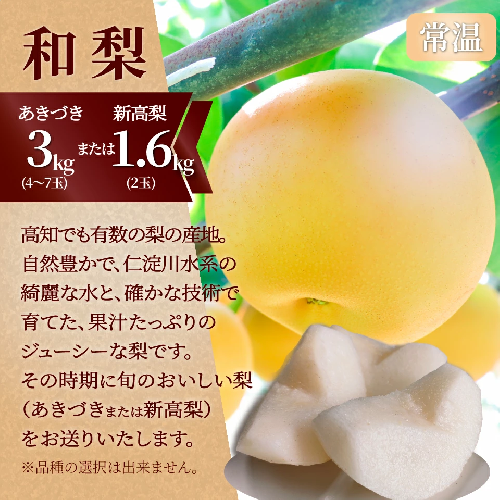 ・梨 品種:あきづき 3kg×1箱 または 新高梨(2玉/1玉800g以上)×1箱【常温】