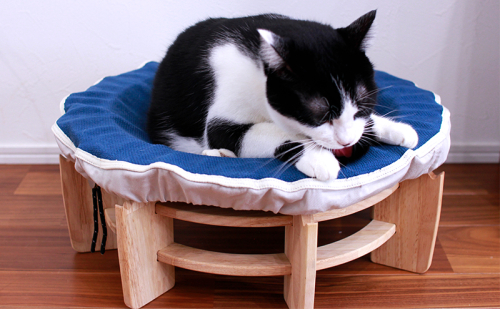 - ハマダの大屋根リング カバー付き(藍色)インテリア 犬 猫 ペット 木製 ベッド ベット 円形 丸型 岡山 里庄町