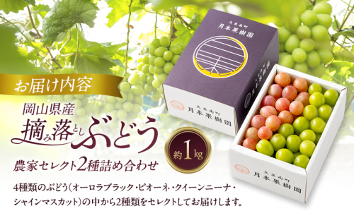 - 岡山県産 摘み落としぶどう 農家セレクト2種詰め合わせ 約1kg 葡萄 ブドウ 岡山県産 オーロラブラック ピオーネ クイーンニーナ シャインマスカット 数量限定