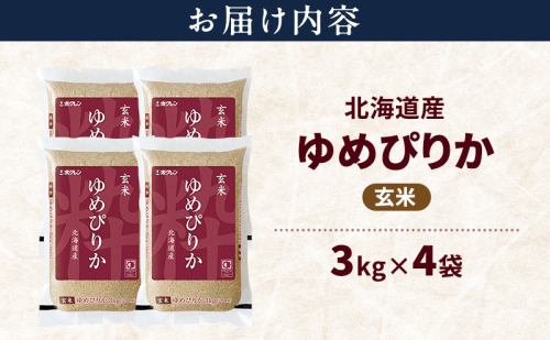 (玄米)ホクレンゆめぴりか12kg(3kg×4袋)をお届けします。