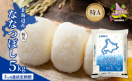 【3ヵ月連続定期便】北海道産 ななつぼし 精米 5kg 米 特A 獲得 白米 ごはん 定期便 定期配送 3ヵ月 道産米 ブランド米 5キロ お米 ご飯 米 北海道米 JAふらの ホクレン ホクレン米 送料無料 北海道 富良野市