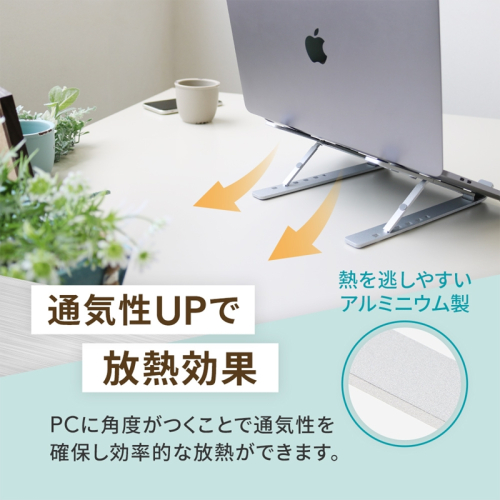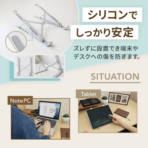 角度を10度・20度・30度・35度・38度・42度と、お使いの機器やお好みに合わせて6段階に調整できるため、姿勢を改善し身体への負担を軽減します。