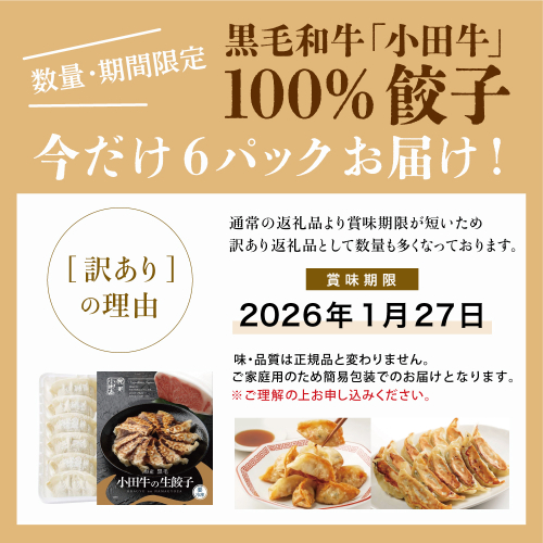 【訳あり】鹿児島県産黒毛和牛「小田牛」 牛肉100%使用の餃子72個(12個×6P) 期間・数量限定 ★年内発送★5営業日以内に発送 総菜 餃子 ぎょうざ ギョーザ 黒毛和牛 小田畜産 冷凍 南さつま市