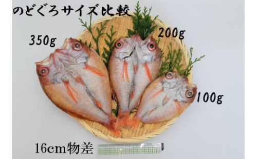 毎回お付けするのどぐろ一夜干しは脂が乗った希少な特大サイズ(30 cm、350 g前後)をご用意しました。3~4人で召し上がれるサイズです。化粧箱入りで贈り物にも最適です。