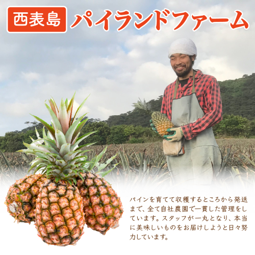 西表島という亜熱帯独特の気候が育てる南国フルーツ!ピーチパイン! 名前にもあるように、桃のような甘い香りに一口食べるとジューシーに広がる果実。 果肉が他の品種と比べてやや白色。パインを樹上でしっかり成熟させ、美味しさを1玉にぎゅっと込めて収穫。 収穫をしたら速やかに発送をして、新鮮な状態でお届けしております。また、当農園は内部品質センサーでパインの糖度・酸度・熟度を計測し、基準を満たしたものを発送いたします。