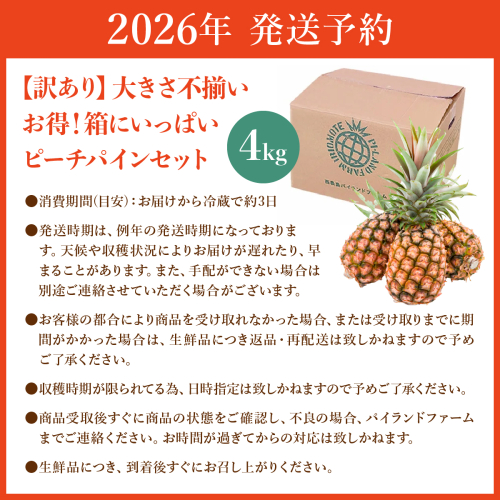 <訳あり!>2026年 先行予約 大きさ不揃い お得!箱にいっぱいピーチパイン4kgセット 2414634 - 沖縄県竹富町