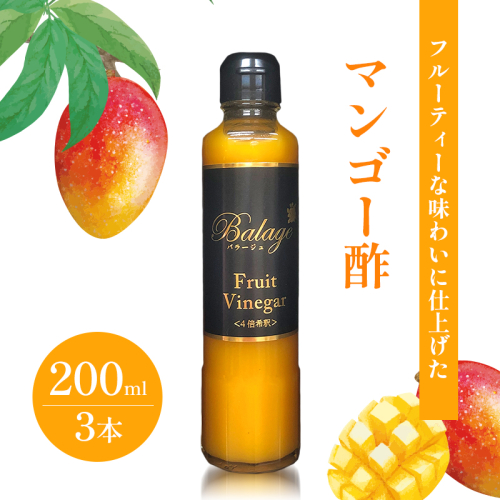 • KK食品のフルーツ酢 200ml×3本セット(ギフト箱入り)(マンゴー酢×3本) 酢 フルーツビネガー 飲む酢 果実酢 ギフト 贈り物 浜松市
