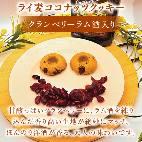 ◆ライ麦ココナッツクッキー【やさしいヴィーガン】クランベリーラム酒入り(6コ)