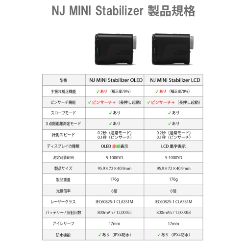 NINJOR GOLF NJ MINI Stabilizer LCD ( ブラック ) ゴルフ レーザー 距離計 コンパクトサイズ 距離測定器 手振れ補正 ゴルフ距離計 生活防水 IPX4 [FE11-NT]