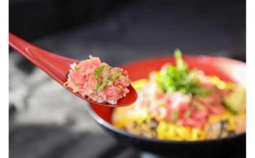 旨味たっぷりのマグロをネギトロにしました。温かいご飯にかけるだけでおいしく召し上がれます。