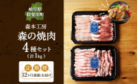 - 3カ月定期便 森本工房 森の焼肉 飛騨・美濃けんとん 4種 セット計1kg 各250g 焼肉 肉 お肉 豚肉 ブランド豚 ポーク 豚バラ スペアリブ ロース 肩ロース 食べ比べ 詰め合わせ BBQ 冷蔵 送料無料 岐阜県 揖斐川町