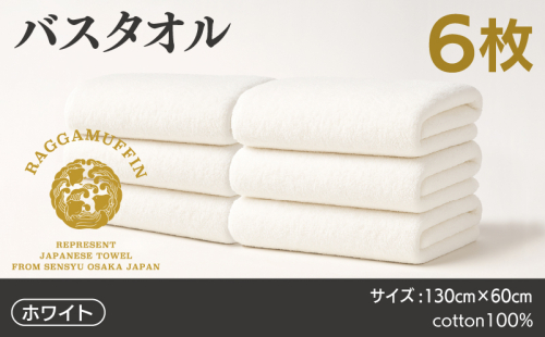高級泉州タオル ラガマフィン バスタオル ホワイト 6枚 099H4135