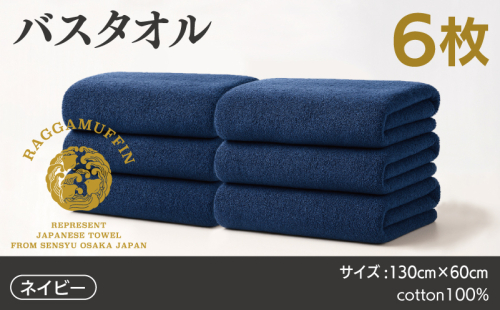 高級泉州タオル ラガマフィン バスタオル ネイビー 6枚 099H4136 2427764 - 大阪府泉佐野市