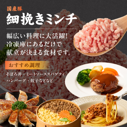 国産豚のミンチ肉は細挽きです。ミートボールや餃子、肉そぼろなど幅広い料理に大活躍!