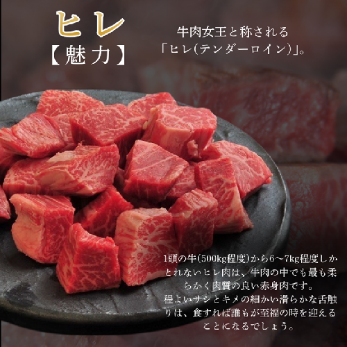 1頭の牛(500kg程度)から6~7kg程度しかとれないヒレ肉は、牛肉の中でも最も柔らかく肉質の良い赤身肉です。
