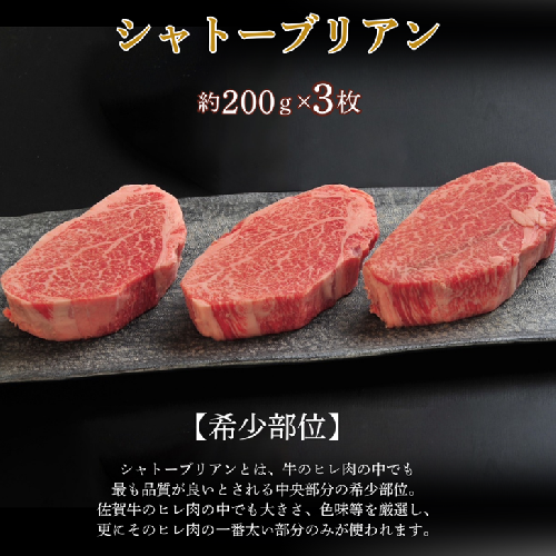 佐賀牛シャトーブリアン 600g(約200g×3枚):C100-051