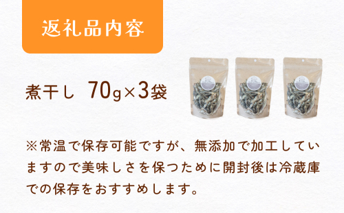 - 無塩加工煮干し 煮干し屋のわんにゃんおやつ 70g×3袋 無塩 煮干し 鰯 ペットフード 人間も可 犬 猫 富山県 氷見市