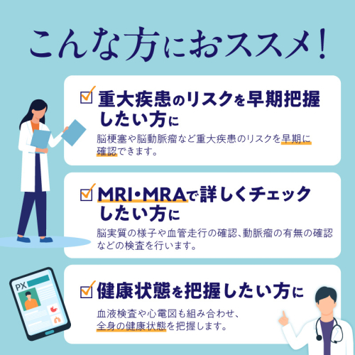 50代以上の方や、ご家族に脳疾患の既往がある方、生活習慣病リスクが気になる方に特におすすめです。