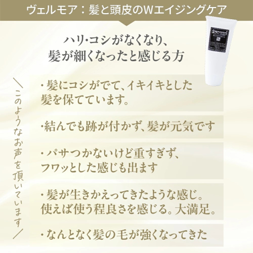 ■成分:水、セタノール、ステアラミドプロピルジメチルアミン、ポリブチレングリコール3PEG/PPG8/5グリセリン、(PPG51/SMDI)コポリマー、イソドデカン、ステアリン酸グリセリル、ジヘプタン酸ネオペンチルグリコール、ポリリシノレイン酸ポリグリセリル6、乳酸、アルガニアスピノサ核油、ホホバ種子油、ジラウロイルグルタミン酸リシンNa、加水分解ケラチン(羊毛)、フルボ酸エキス、シスチン、ヘマチン、フラーレン、ヒト遺伝子組換オリゴペプチド1、水溶性プロテオグリカン、ヒアルロン酸Na、加水分解コラーゲン、白金、カニナバラ果実エキス、カミツレ花エキス、セイヨウオトギリソウ花/葉/茎エキス、チャ葉エキス、トウキンセンカ花エキス、フユボダイジュ花エキス、ヤグルマギク花エキス、ローマカミツレ花エキス、ホウケイ酸(Ca/Na)、酸化銀、炭酸水素Na、ダイズ油、リン酸Na、レシチン、グリセリン、PEG2オレアンモニウムクロリド、イソプロパノール、BG、エタノール、クエン酸Na、PVP、フェノキシエタノール、香料