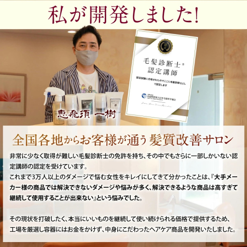 イメージではなく、「本当に髪や地肌にいいヘアケアを!」というコンセプトで企画、開発いたしました。