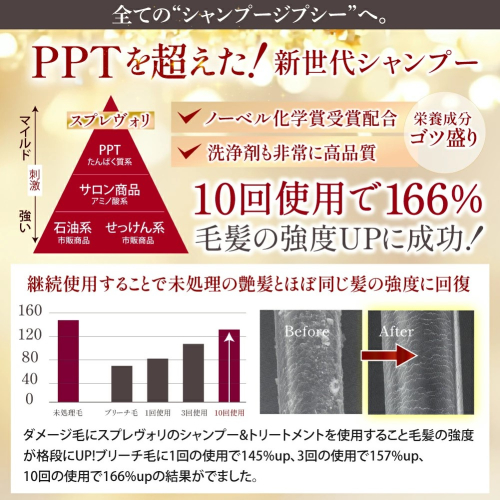ケラチン、コラーゲン、ヒアルロン酸、ヘマチンetcはもちろん、フラーレン (ノーベル賞受賞成分)、EGF (ノーベル賞受賞原料)、プロテオグリカン、フルボ酸エキス、プラチナナノコロイドなどなど、エイジングケアに有効な成分も贅沢に配合。