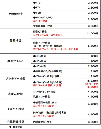 ※予約していただく際に、コースまたは検査内容をお伝えください。