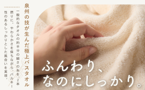 長年培ってきた泉州タオルの技術で2本撚りにすることで、やわらかさを保ちながら、空気を含んだふっくらとしたバルキーな風合いを実現しました。